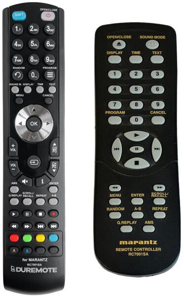 Az eredeti 1:1 arányú duplikátuma távirányító MARANTZ RC7001SA. A távirányító a MARANTZ:SA7001. (Előfordulhat, hogy nem minden kompatibilis modell szerepel a listában. Ha nem biztos benne, csak adja meg a készülékmodelljét (online chat-en vagy e-mailben), és mi azonnal ellenőrizzük, if kompatibilis-e az Ön készülékével. Az ellenőrzött kompatibilitást mi garantáljuk. )