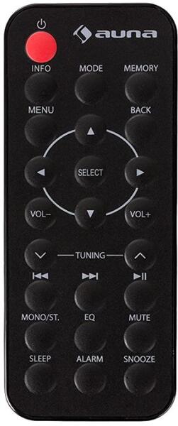 Helyettesítő távirányító AUNA iAdapt 320 - 100%-os 1:1 arányú helyettesítője az eredeti távirányítónak. A távirányító a AUNA:10031919, 10031920, 10031921, IADAPT 320, ITUNER 320 BT. (Előfordulhat, hogy nem minden kompatibilis modell szerepel a listában. Ha nem biztos benne, csak adja meg a készülékmodelljét (online chat-en vagy e-mailben), és mi azonnal ellenőrizzük, if