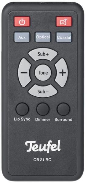 Az eredeti 1:1 arányú duplikátuma távirányító TEUFEL CB 21 RC, CINEBAR 21XL. A távirányító a TEUFEL:CB21RC, CINEBAR 21XL. (Előfordulhat, hogy nem minden kompatibilis modell szerepel a listában. Ha nem biztos benne, csak adja meg a készülékmodelljét (online chat-en vagy e-mailben), és mi azonnal ellenőrizzük, if kompatibilis-e az Ön készülékével. Az ellenőrzött kompatibil