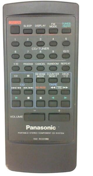 Helyettesítő távirányító PANASONIC RAK-RX309WM (RAKRX309WM) - 100%-os 1:1 arányú helyettesítője az eredeti távirányítónak. A távirányító a PANASONIC:RX-DT610, RX-DT680, RXDT610, RXDT680. (Előfordulhat, hogy nem minden kompatibilis modell szerepel a listában. Ha nem biztos benne, csak adja meg a készülékmodelljét (online chat-en vagy e-mailben), és mi azonnal ellenőrizzük