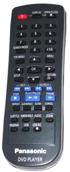 Helyettesítő távirányító PANASONIC N2QAYA000015 - 100%-os 1:1 arányú helyettesítője az eredeti távirányítónak. A távirányító a PANASONIC:DVD-S38, DVD-S48, DVD-S485, DVD-S500, DVD-S500EP-K, DVD-S58, DVD-S68, DVD-S700, DVD-S700EP-K, DVDS38, DVDS48, DVDS485, DVDS500, DVDS500EP-K, DVDS58, DVDS68, DVDS700, DVDS700EP-K. (Előfordulhat, hogy nem minden kompatibilis modell szerepel a lis