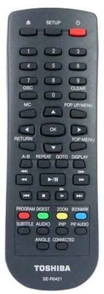 Helyettesítő távirányító TOSHIBA SE-R0421 (SER0421) - 100%-os 1:1 arányú helyettesítője az eredeti távirányítónak. A távirányító a TOSHIBA:BDX-2300, BDX-4350KE, BDX2300, BDX4350KE, SER0421. (Előfordulhat, hogy nem minden kompatibilis modell szerepel a listában. Ha nem biztos benne, csak adja meg a készülékmodelljét (online chat-en vagy e-mailben), és mi azonnal ellenőrizz