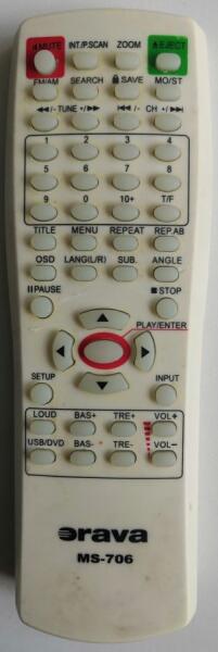 Helyettesítő távirányító ORAVA MS-706 (MS706) - 100%-os 1:1 arányú helyettesítője az eredeti távirányítónak. A távirányító a ORAVA:MS-706, MS706. (Előfordulhat, hogy nem minden kompatibilis modell szerepel a listában. Ha nem biztos benne, csak adja meg a készülékmodelljét (online chat-en vagy e-mailben), és mi azonnal ellenőrizzük, if kompatibilis-e az Ön készülékév