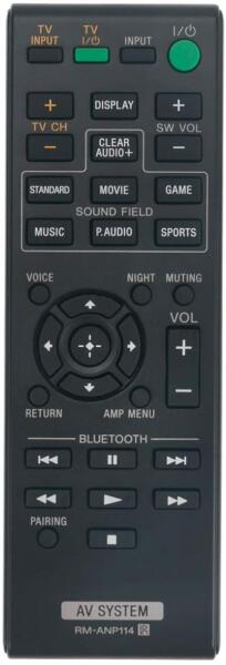 Vadonatúj helyettesítő távirányító SONY RM-ANP114 (RMANP114). A távirányító a SONY:HT-CT370, HT-CT770, HTCT370, HTCT770. (Előfordulhat, hogy nem minden kompatibilis modell szerepel a listában. Ha nem biztos benne, csak adja meg a készülékmodelljét (online chat-en vagy e-mailben), és mi azonnal ellenőrizzük, if kompatibilis-e az Ön készülékével. Az ellenőrzött kompatibili