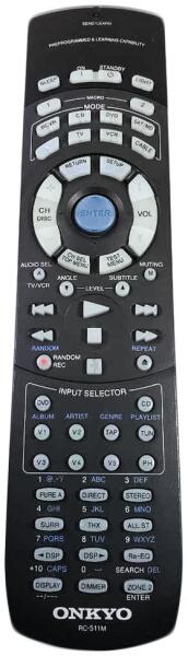 Helyettesítő távirányító ONKYO RC-511M (RC511M) - 100%-os 1:1 arányú helyettesítője az eredeti távirányítónak. A távirányító a ONKYO:TX-NR801E, TX-S696, TXNR801E, TXS696. (Előfordulhat, hogy nem minden kompatibilis modell szerepel a listában. Ha nem biztos benne, csak adja meg a készülékmodelljét (online chat-en vagy e-mailben), és mi azonnal ellenőrizzük, if kompatibili