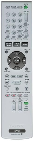 Az eredeti 1:1 arányú duplikátuma távirányító SONY RMT-D230P (RMTD230P). A távirányító a SONY:RDR-GX120, RDR-GX220, RDR-HX520, RDR-HX720, RDR-HX820, RDR-HX920, RDR-HX920/S. (Előfordulhat, hogy nem minden kompatibilis modell szerepel a listában. Ha nem biztos benne, csak adja meg a készülékmodelljét (online chat-en vagy e-mailben), és mi azonnal ellenőrizzük, if kompatibilis-e a