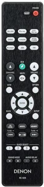 Az eredeti 1:1 arányú duplikátuma távirányító DENON RC-1225 (RC1225). A távirányító a DENON:AVR-X250BT, AVRX250BT. (Előfordulhat, hogy nem minden kompatibilis modell szerepel a listában. Ha nem biztos benne, csak adja meg a készülékmodelljét (online chat-en vagy e-mailben), és mi azonnal ellenőrizzük, if kompatibilis-e az Ön készülékével. Az ellenőrzött kompatibilitást