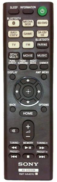 Helyettesítő távirányító SONY RMT-AA401U (RMTAA401U) - 100%-os 1:1 arányú helyettesítője az eredeti távirányítónak. A távirányító a SONY:STR-DH590, STR-DH790, STRDH590, STRDH790. (Előfordulhat, hogy nem minden kompatibilis modell szerepel a listában. Ha nem biztos benne, csak adja meg a készülékmodelljét (online chat-en vagy e-mailben), és mi azonnal ellenőrizzük, if kom