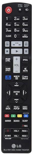 Az eredeti 1:1 arányú duplikátuma távirányító LG AKB73275501. A távirányító a LG:HB906TAW, LHB336, LHB536, LHB976. (Előfordulhat, hogy nem minden kompatibilis modell szerepel a listában. Ha nem biztos benne, csak adja meg a készülékmodelljét (online chat-en vagy e-mailben), és mi azonnal ellenőrizzük, if kompatibilis-e az Ön készülékével. Az ellenőrzött kompatibilitást