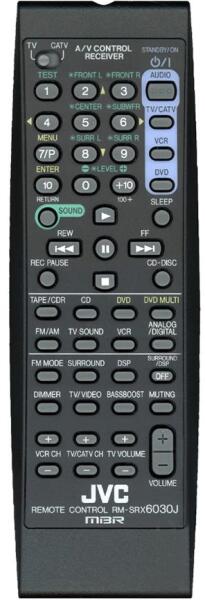 Helyettesítő távirányító JVC RM-SRX6030J, RM-SRX6032J (RMSRX6030J, RMSRX6032J) - 100%-os 1:1 arányú helyettesítője az eredeti távirányítónak. A távirányító a JVC:GX-10097, RX-5030V, RX-5030VBK, RX-5032V, RX-5032VSL, RX-5040B, RX-5060B, RX-5060BJD, RX-6020V, RX-6020VBK, RX-6020VBKC, RX-6022VSL, RX-6030V, RX-6030VBK, RX-6032V, RX-6032VSL. (Előfordulhat, hogy nem minden kompatibili