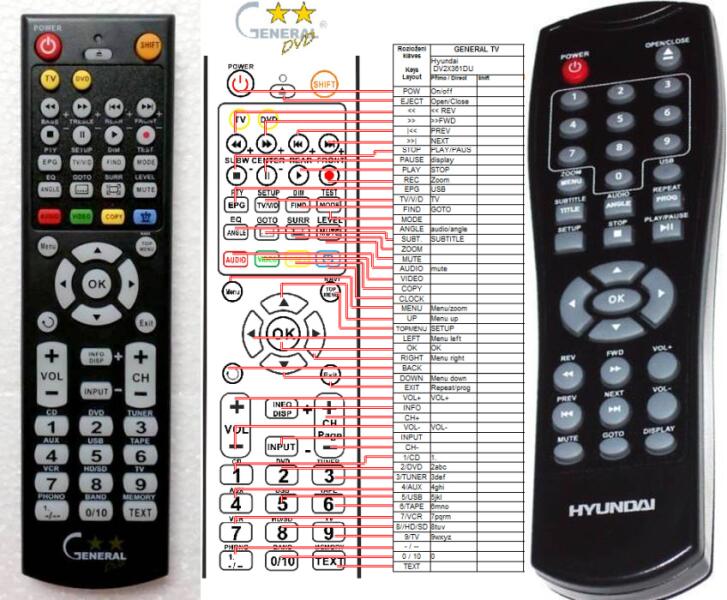 Helyettesítő távirányító HYUNDAI DV2X361DU - 100%-os 1:1 arányú helyettesítője az eredeti távirányítónak. A távirányító a HYUNDAI:DV2X361DU, DXH-365, DXH365. (Előfordulhat, hogy nem minden kompatibilis modell szerepel a listában. Ha nem biztos benne, csak adja meg a készülékmodelljét (online chat-en vagy e-mailben), és mi azonnal ellenőrizzük, if kompatibilis-e az Ön k
