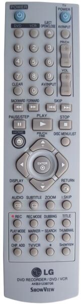 Helyettesítő távirányító LG AKB31238706, AKB31238709 - 100%-os 1:1 arányú helyettesítője az eredeti távirányítónak. A távirányító a LG:KOMBO DVR+VHS, RC-278, RC-288, RC-299, RC-299H, RC278, RC288, RC299, RC299H. (Előfordulhat, hogy nem minden kompatibilis modell szerepel a listában. Ha nem biztos benne, csak adja meg a készülékmodelljét (online chat-en vagy e-mailben), és