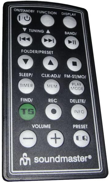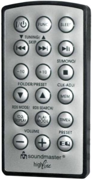 Az eredeti 1:1 arányú duplikátuma távirányító Soundmaster MCD1700. A távirányító a Soundmaster:MCD-1700, MCD1700. (Előfordulhat, hogy nem minden kompatibilis modell szerepel a listában. Ha nem biztos benne, csak adja meg a készülékmodelljét (online chat-en vagy e-mailben), és mi azonnal ellenőrizzük, if kompatibilis-e az Ön készülékével. Az ellenőrzött kompatibilitást m