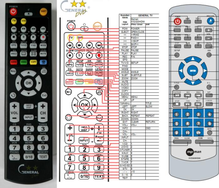 Helyettesítő távirányító MPMAN XVD320HDMI - 100%-os 1:1 arányú helyettesítője az eredeti távirányítónak. A távirányító a MPMAN:XVD320HDMI. (Előfordulhat, hogy nem minden kompatibilis modell szerepel a listában. Ha nem biztos benne, csak adja meg a készülékmodelljét (online chat-en vagy e-mailben), és mi azonnal ellenőrizzük, if kompatibilis-e az Ön készülékével. Az