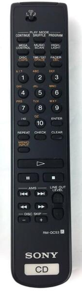 Helyettesítő távirányító SONY RM-DC53 (RMDC53) - 100%-os 1:1 arányú helyettesítője az eredeti távirányítónak. A távirányító a SONY:CDP-C460Z, CDP-C46OZ, CDP-CE345, CDP-CE5, CDP-CE515, CDPC460Z, CDPC46OZ, CDPCE5, CDPCE515, RM-DC355. (Előfordulhat, hogy nem minden kompatibilis modell szerepel a listában. Ha nem biztos benne, csak adja meg a készülékmodelljét (online chat-en v