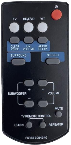 Vadonatúj helyettesítő távirányító YAMAHA ZC94940. A távirányító a YAMAHA:NS-WSW40, YAS-201, YAS-CU201. (Előfordulhat, hogy nem minden kompatibilis modell szerepel a listában. Ha nem biztos benne, csak adja meg a készülékmodelljét (online chat-en vagy e-mailben), és mi azonnal ellenőrizzük, if kompatibilis-e az Ön készülékével. Az ellenőrzött kompatibilitást mi garantá