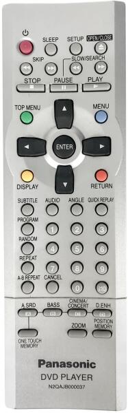 Helyettesítő távirányító PANASONIC N2QAJB000037 - 100%-os 1:1 arányú helyettesítője az eredeti távirányítónak. A távirányító a PANASONIC:DVD-XP30, DVD-XV10, DVDXP30, DVDXV10. (Előfordulhat, hogy nem minden kompatibilis modell szerepel a listában. Ha nem biztos benne, csak adja meg a készülékmodelljét (online chat-en vagy e-mailben), és mi azonnal ellenőrizzük, if kompati