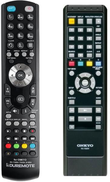 Az eredeti 1:1 arányú duplikátuma távirányító ONKYO RC-730DV (RC730DV). A távirányító a ONKYO:BD-SP807, BDSP807, DV-BD507, DV-BD606, DVBD507, DVBD606. (Előfordulhat, hogy nem minden kompatibilis modell szerepel a listában. Ha nem biztos benne, csak adja meg a készülékmodelljét (online chat-en vagy e-mailben), és mi azonnal ellenőrizzük, if kompatibilis-e az Ön készülékével