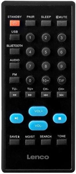 Helyettesítő távirányító LENCO BTT-1 (BTT1) - 100%-os 1:1 arányú helyettesítője az eredeti távirányítónak. A távirányító a LENCO:BBT-1, BBT1. (Előfordulhat, hogy nem minden kompatibilis modell szerepel a listában. Ha nem biztos benne, csak adja meg a készülékmodelljét (online chat-en vagy e-mailben), és mi azonnal ellenőrizzük, if kompatibilis-e az Ön készülékével.