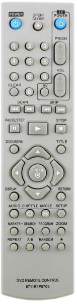 Vadonatúj helyettesítő távirányító LG 6711R1P070G. A távirányító a LG:DV-8900, DV8700A, DV9800H, DVX9900, DX-8901. (Előfordulhat, hogy nem minden kompatibilis modell szerepel a listában. Ha nem biztos benne, csak adja meg a készülékmodelljét (online chat-en vagy e-mailben), és mi azonnal ellenőrizzük, if kompatibilis-e az Ön készülékével. Az ellenőrzött kompatibilitást