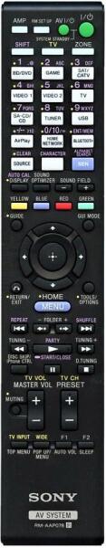 Helyettesítő távirányító SONY RM-AAP078, RM-AAP079 (RMAAP078, RMAAP079) - 100%-os 1:1 arányú helyettesítője az eredeti távirányítónak. A távirányító a SONY:STR-DH820, STR-DN1030, STRDH820, STRDN1030. (Előfordulhat, hogy nem minden kompatibilis modell szerepel a listában. Ha nem biztos benne, csak adja meg a készülékmodelljét (online chat-en vagy e-mailben), és mi azonnal e