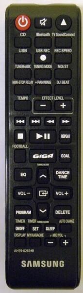 Vadonatúj eredeti távirányító SAMSUNG AH59-02694B (AH5902694B). A távirányító a SAMSUNG:MX-J630, MX-J730, MXJ630, MXJ730. (Előfordulhat, hogy nem minden kompatibilis modell szerepel a listában. Ha nem biztos benne, csak adja meg a készülékmodelljét (online chat-en vagy e-mailben), és mi azonnal ellenőrizzük, if kompatibilis-e az Ön készülékével. Az ellenőrzött kompatibilit