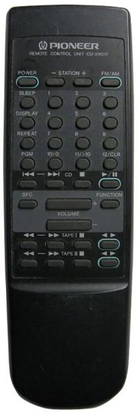 Helyettesítő távirányító PIONEER CU-XR017 (CUXR017) - 100%-os 1:1 arányú helyettesítője az eredeti távirányítónak. A távirányító a PIONEER:XR-J130, XR-J330, XRJ130, XRJ330. (Előfordulhat, hogy nem minden kompatibilis modell szerepel a listában. Ha nem biztos benne, csak adja meg a készülékmodelljét (online chat-en vagy e-mailben), és mi azonnal ellenőrizzük, if kompatibi