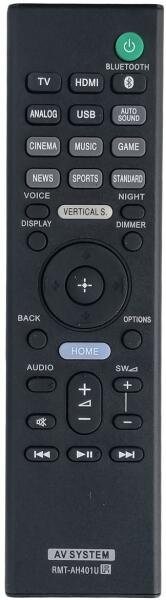 Vadonatúj helyettesítő távirányító SONY RMT-AH400U, RMT-AH401U (RMTAH400U, RMTAH401U). A távirányító a SONY:HT-X9000F, HT-XF9000, HT-ZF9, HTXF9000, HTZF9, SA-WX9000F, SA-X9000F, SAWX9000F. (Előfordulhat, hogy nem minden kompatibilis modell szerepel a listában. Ha nem biztos benne, csak adja meg a készülékmodelljét (online chat-en vagy e-mailben), és mi azonnal ellenőrizzük, if
