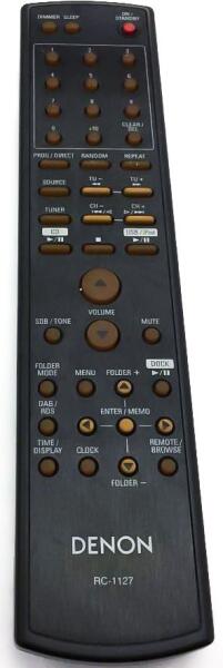 Az eredeti 1:1 arányú duplikátuma távirányító DENON RC-1127 (RC1127). A távirányító a DENON:DCD-F107, DRA-F07, DRA-F107, RCD-M38, RCDM38. (Előfordulhat, hogy nem minden kompatibilis modell szerepel a listában. Ha nem biztos benne, csak adja meg a készülékmodelljét (online chat-en vagy e-mailben), és mi azonnal ellenőrizzük, if kompatibilis-e az Ön készülékével. Az ellenőr