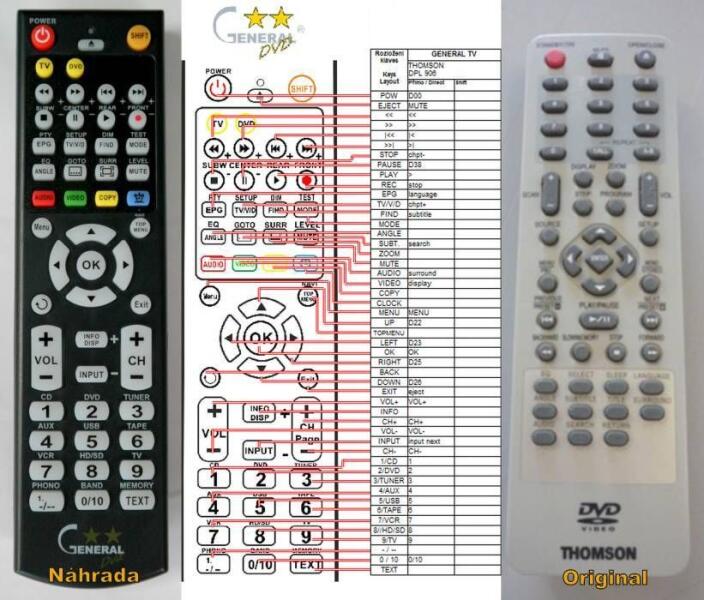 Helyettesítő távirányító THOMSON DPL906VD - 100%-os 1:1 arányú helyettesítője az eredeti távirányítónak. A távirányító a THOMSON:DPL906, DPL906VD. (Előfordulhat, hogy nem minden kompatibilis modell szerepel a listában. Ha nem biztos benne, csak adja meg a készülékmodelljét (online chat-en vagy e-mailben), és mi azonnal ellenőrizzük, if kompatibilis-e az Ön készüléké