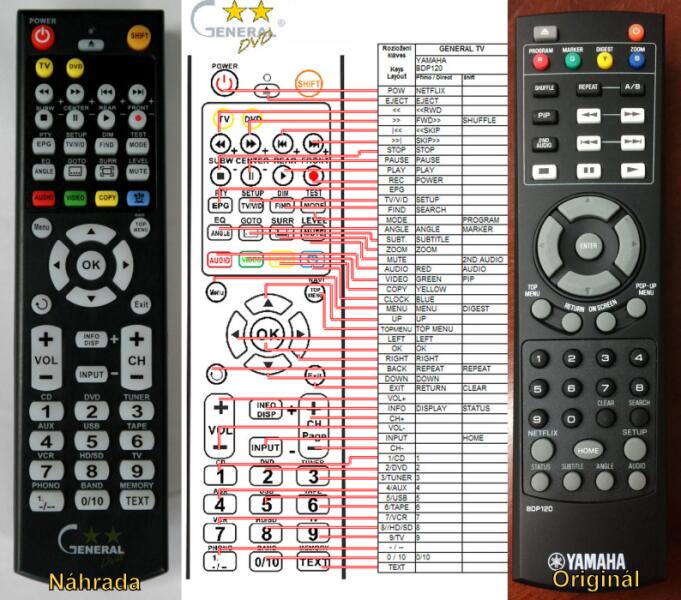 Helyettesítő távirányító YAMAHA BDP120, BDP121 - 100%-os 1:1 arányú helyettesítője az eredeti távirányítónak. A távirányító a YAMAHA:BD-S473, BD-S473B, BDS473B. (Előfordulhat, hogy nem minden kompatibilis modell szerepel a listában. Ha nem biztos benne, csak adja meg a készülékmodelljét (online chat-en vagy e-mailben), és mi azonnal ellenőrizzük, if kompatibilis-e az Ön