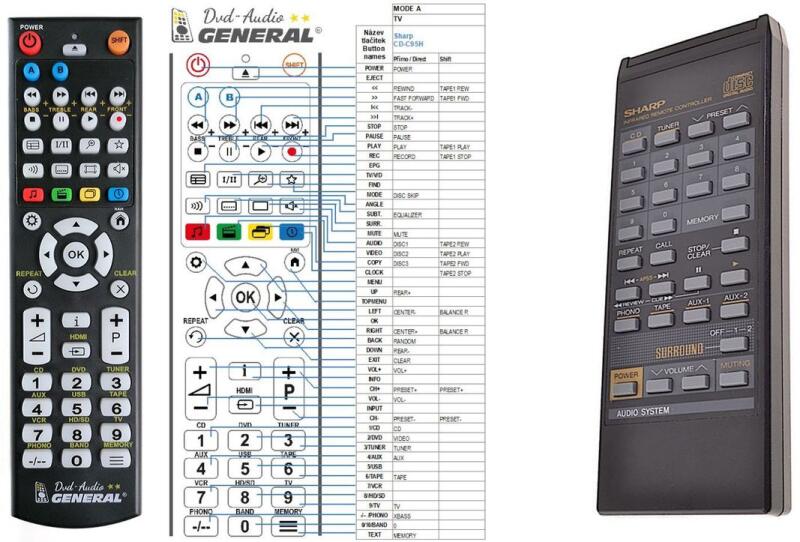 Helyettesítő távirányító SHARP RRMCG0182AFSA - 100%-os 1:1 arányú helyettesítője az eredeti távirányítónak. A távirányító a SHARP:SC-7700CDHMK2, SC7700CDHMK2. (Előfordulhat, hogy nem minden kompatibilis modell szerepel a listában. Ha nem biztos benne, csak adja meg a készülékmodelljét (online chat-en vagy e-mailben), és mi azonnal ellenőrizzük, if kompatibilis-e az Ön k