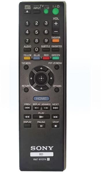 Helyettesítő távirányító SONY RMT-B107A (RMTB107A) - 100%-os 1:1 arányú helyettesítője az eredeti távirányítónak. A távirányító a SONY:BD-EV870, BD-EV970W, BDP-BX37, BDP-BX57, BDP-BX59, BDP-N460, BDP-S470, BDP-S480, BDP-S490, BDP-S495, BDP-S550, BDP-S560, BDP-S570, BDP-S580, BDP-S780, BDP-X2, RMTB109A. (Előfordulhat, hogy nem minden kompatibilis modell szerepel a listában. Ha n