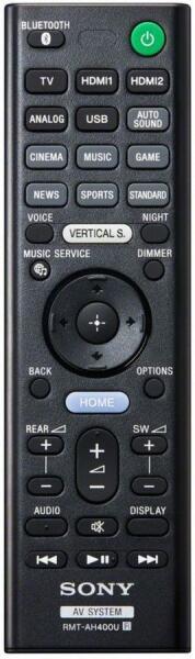 Helyettesítő távirányító SONY RMT-AH400U, RMT-AH401U (RMTAH400U, RMTAH401U) - 100%-os 1:1 arányú helyettesítője az eredeti távirányítónak. A távirányító a SONY:HT-X9000F, HT-XF9000, HT-ZF9, HTXF9000, HTZF9, SA-WX9000F, SA-X9000F, SAWX9000F. (Előfordulhat, hogy nem minden kompatibilis modell szerepel a listában. Ha nem biztos benne, csak adja meg a készülékmodelljét (online