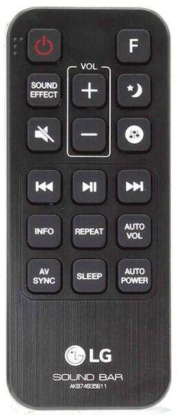 Helyettesítő távirányító LG AKB74935611 - 100%-os 1:1 arányú helyettesítője az eredeti távirányítónak. A távirányító a LG:SH-7, SH-7B, SH-8, SH-8B, SH7, SH7B, SH8, SH8B, SJ-6, SJ-8, SJ-9, SJ6, SJ8, SJ9. (Előfordulhat, hogy nem minden kompatibilis modell szerepel a listában. Ha nem biztos benne, csak adja meg a készülékmodelljét (online chat-en vagy e-mailben), és mi azonna