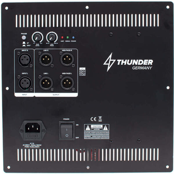Műszaki adatok: - RMS teljesítmény: 350W - MAX teljesítmény: 700W - Csúcs teljesítmény: 1400W - THD: