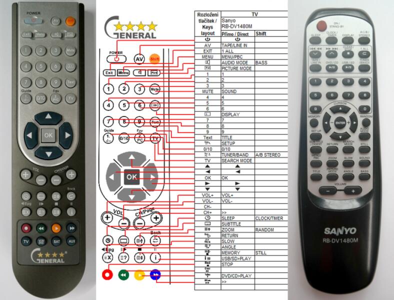 Helyettesítő távirányító SANYO RB-DV1480M (RBDV1480M) - 100%-os 1:1 arányú helyettesítője az eredeti távirányítónak. A távirányító a SANYO:DC-DV1480M, DCDV1480M. (Előfordulhat, hogy nem minden kompatibilis modell szerepel a listában. Ha nem biztos benne, csak adja meg a készülékmodelljét (online chat-en vagy e-mailben), és mi azonnal ellenőrizzük, if kompatibilis-e az Ö
