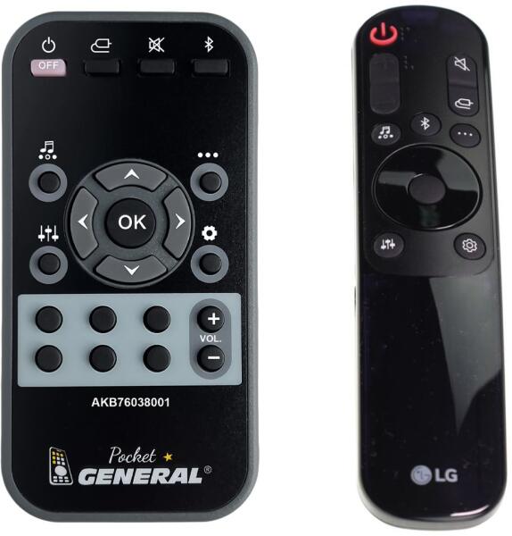 Az eredeti 1:1 arányú duplikátuma távirányító LG AKB76038001. A távirányító a LG:DS75Q, DS80QR, DS95QR, DSC9S, DSG10TY, DSP8YA, PQ9-SL, S60Q, S65Q, S75QR, S78S2-S, S80QY, S90QY, S95QR, SP11RA, SP7, SP7Y, SP8A, SP8YA, SP9A, SP9YA, SP9YT, SPP11M-SL, SPP11M-SR, SPQ9-SL, SPQ9-SR, WTP3. (Előfordulhat, hogy nem minden kompatibilis modell szerepel a listában. Ha nem biztos benne, csak adja m