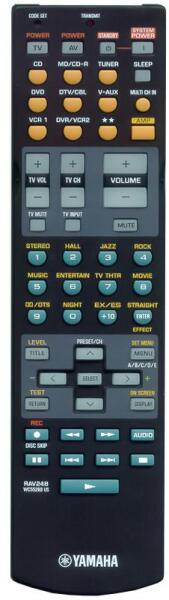 Az eredeti 1:1 arányú duplikátuma távirányító YAMAHA RAV248, RAV250, RAV255. A távirányító a YAMAHA:7811913, DSP-AX440, HTR-5230, HTR-5550, HTR-5630, HTR-5630RDS, HTR-5650, HTR-5650RDS, HTR-5730, HTR-5750, HTR-5760, HTR-5940, HTR5760, RX-V430, RX-V440, RX-V457, RX-V530, RX-V540, RX-V540RDS, RX-V630, RX-V657, RX-V657RDS, RX-V730, RXV530, RXV650, RXV650RDS, U829530, WC55260, WC552600, WC5