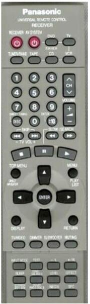 Helyettesítő távirányító PANASONIC EUR7622030, EUR7622050, EUR7622KAO, EUR7622XAO - 100%-os 1:1 arányú helyettesítője az eredeti távirányítónak. A távirányító a PANASONIC:SA-XR15, SA-XR25E, SA-XR25S, SA-XR45, SAXR45, SC-HT425D. (Előfordulhat, hogy nem minden kompatibilis modell szerepel a listában. Ha nem biztos benne, csak adja meg a készülékmodelljét (online chat-en vagy
