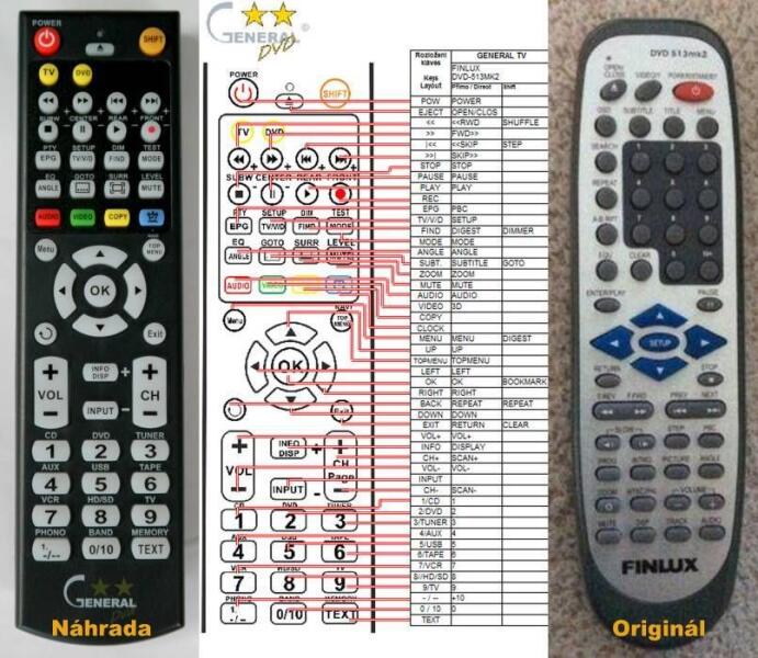 Helyettesítő távirányító FINLUX DVD-513MK2 (DVD513MK2) - 100%-os 1:1 arányú helyettesítője az eredeti távirányítónak. A távirányító a FINLUX:DVD-513MK2. (Előfordulhat, hogy nem minden kompatibilis modell szerepel a listában. Ha nem biztos benne, csak adja meg a készülékmodelljét (online chat-en vagy e-mailben), és mi azonnal ellenőrizzük, if kompatibilis-e az Ön készü
