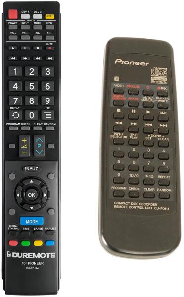 Az eredeti 1:1 arányú duplikátuma távirányító PIONEER CU-PD114 (CUPD114). A távirányító a PIONEER:CU-PD114, CUPD114, PDR509. (Előfordulhat, hogy nem minden kompatibilis modell szerepel a listában. Ha nem biztos benne, csak adja meg a készülékmodelljét (online chat-en vagy e-mailben), és mi azonnal ellenőrizzük, if kompatibilis-e az Ön készülékével. Az ellenőrzött kompati