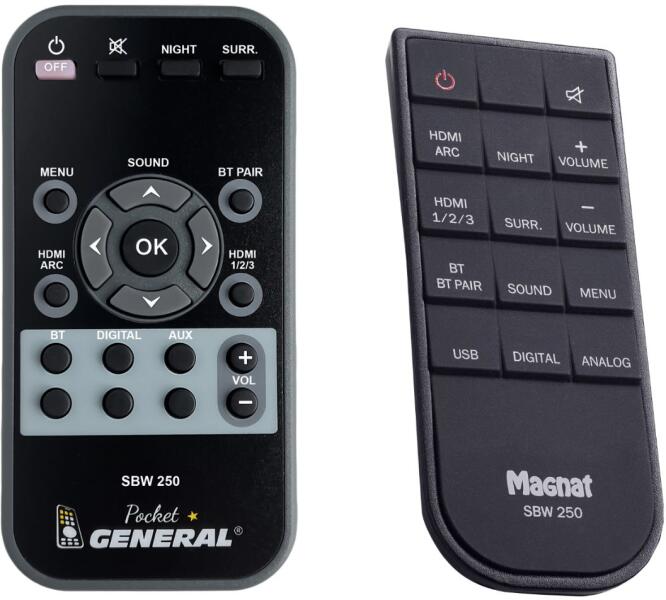 Az eredeti 1:1 arányú duplikátuma távirányító MAGNAT SBW 250. A távirányító a MAGNAT:SBW 250, SBW250. (Előfordulhat, hogy nem minden kompatibilis modell szerepel a listában. Ha nem biztos benne, csak adja meg a készülékmodelljét (online chat-en vagy e-mailben), és mi azonnal ellenőrizzük, if kompatibilis-e az Ön készülékével. Az ellenőrzött kompatibilitást mi garantálj