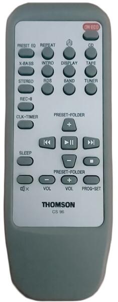 Az eredeti 1:1 arányú duplikátuma távirányító THOMSON CS96. A távirányító a THOMSON:CS-96, CS96. (Előfordulhat, hogy nem minden kompatibilis modell szerepel a listában. Ha nem biztos benne, csak adja meg a készülékmodelljét (online chat-en vagy e-mailben), és mi azonnal ellenőrizzük, if kompatibilis-e az Ön készülékével. Az ellenőrzött kompatibilitást mi garantáljuk. )