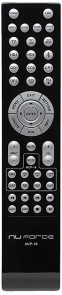 Helyettesítő távirányító NUFORCE AVP18 - 100%-os 1:1 arányú helyettesítője az eredeti távirányítónak. A távirányító a NUFORCE:AVP-18, AVP18. (Előfordulhat, hogy nem minden kompatibilis modell szerepel a listában. Ha nem biztos benne, csak adja meg a készülékmodelljét (online chat-en vagy e-mailben), és mi azonnal ellenőrizzük, if kompatibilis-e az Ön készülékével. A