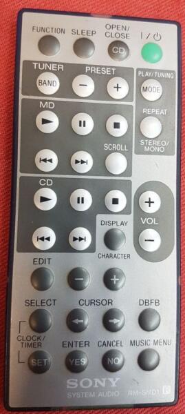 Az eredeti 1:1 arányú duplikátuma távirányító SONY RM-SMD1 (RMSMD1). A távirányító a SONY:CMT-MD1, HCD-MD1EX. (Előfordulhat, hogy nem minden kompatibilis modell szerepel a listában. Ha nem biztos benne, csak adja meg a készülékmodelljét (online chat-en vagy e-mailben), és mi azonnal ellenőrizzük, if kompatibilis-e az Ön készülékével. Az ellenőrzött kompatibilitást mi ga