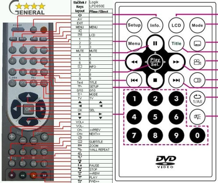 Helyettesítő távirányító LOGIK LPD850E - 100%-os 1:1 arányú helyettesítője az eredeti távirányítónak. A távirányító a LOGIK:LPD850, LPD850E. (Előfordulhat, hogy nem minden kompatibilis modell szerepel a listában. Ha nem biztos benne, csak adja meg a készülékmodelljét (online chat-en vagy e-mailben), és mi azonnal ellenőrizzük, if kompatibilis-e az Ön készülékével. A