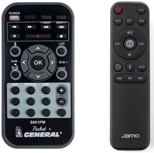 Az eredeti 1:1 arányú duplikátuma távirányító JAMO S-801PM (S801PM). A távirányító a JAMO:S-801PM, S801PM. (Előfordulhat, hogy nem minden kompatibilis modell szerepel a listában. Ha nem biztos benne, csak adja meg a készülékmodelljét (online chat-en vagy e-mailben), és mi azonnal ellenőrizzük, if kompatibilis-e az Ön készülékével. Az ellenőrzött kompatibilitást mi garan