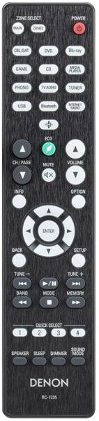Az eredeti 1:1 arányú duplikátuma távirányító DENON RC-1235 (RC1235). A távirányító a DENON:DRA-800H, DRA800H. (Előfordulhat, hogy nem minden kompatibilis modell szerepel a listában. Ha nem biztos benne, csak adja meg a készülékmodelljét (online chat-en vagy e-mailben), és mi azonnal ellenőrizzük, if kompatibilis-e az Ön készülékével. Az ellenőrzött kompatibilitást mi g
