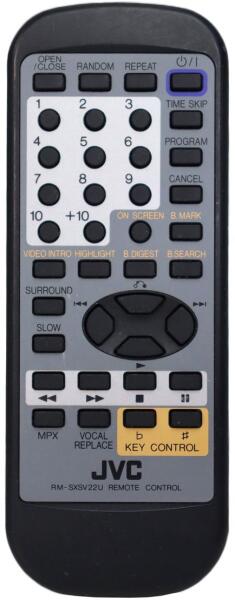 Helyettesítő távirányító JVC RM-SXSV22U ( RMSXSV22U) - 100%-os 1:1 arányú helyettesítője az eredeti távirányítónak. A távirányító a JVC:XL-SV22BK, XLSV22BK. (Előfordulhat, hogy nem minden kompatibilis modell szerepel a listában. Ha nem biztos benne, csak adja meg a készülékmodelljét (online chat-en vagy e-mailben), és mi azonnal ellenőrizzük, if kompatibilis-e az Ön ké